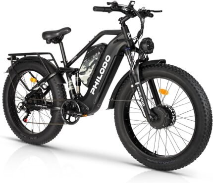 PHILODO Electric Bike for Adults, Dual Motor Fat Tire Ebike 2 * 1000W Dual Battery Electric Bicycles 48V 46AH with Full Suspension Hydraulic Disc Brakes 35MPH