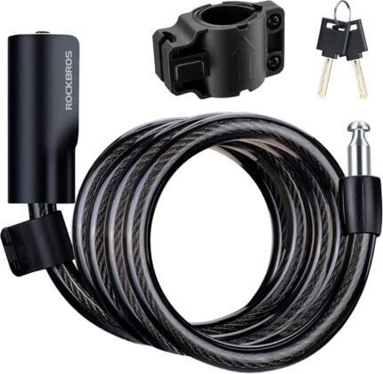 ROCKRBOS Bike Cable Lock with Keys, 2 Keys & 1 Mount Bracket, ABS Lock Shell, Cable Lock for Bike/Gate/Scooter