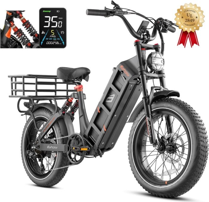 [🔋𝐔𝐩𝐠𝐫𝐚𝐝𝐞𝐝 𝟐,𝟖𝟖𝟎𝐖 𝐁𝐚𝐭𝐭𝐞𝐫𝐲] ①Juliet Electric Bike with Eahora’s custom modular 48V 60Ah(2,880W) battery, an 8A fast charger, allows you to travel up to 100-200 miles per charge. ②The removable battery, along with features like the battery bottom cover, optimized battery interface, IP65 waterproof rating, ensure durability and convenience. How far to go is up to you. Only one battery can fully meet all your expectations for distance!
