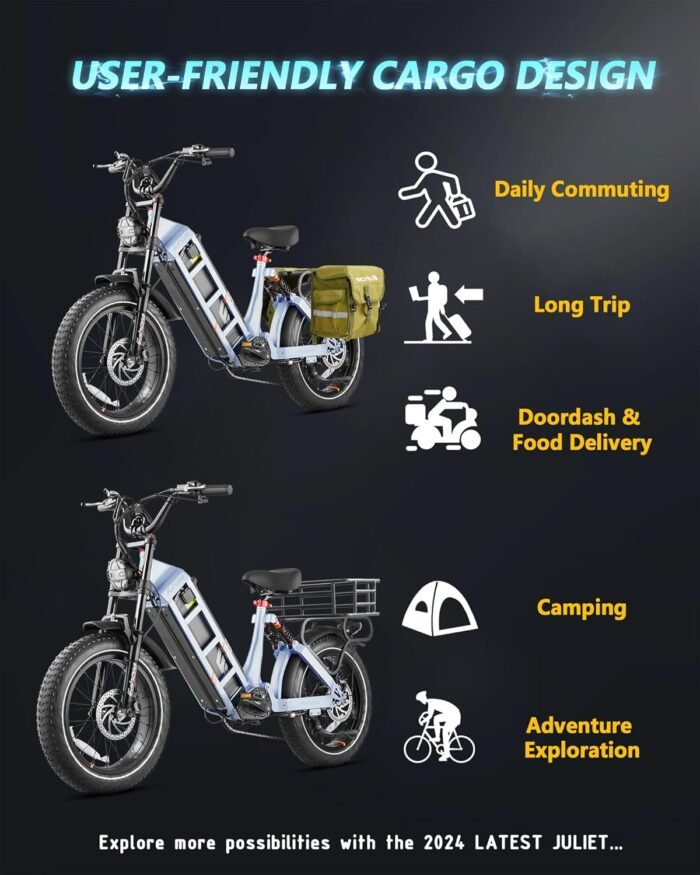 【🌟𝟐𝟎𝟐𝟒 𝐁𝐥𝐚𝐜𝐤 𝐉𝐮𝐥𝐢𝐞𝐭 𝐄𝐱𝐜𝐥𝐮𝐬𝐢𝐯𝐞 𝐔𝐩𝐠𝐫𝐚𝐝𝐞𝐬】This is the 𝐟𝐨𝐮𝐫𝐭𝐡 version of Juliet ①8A charger ②Upgraded adjustable and lockable front fork③Optimize front and rear light systems④Optimize battery charging interface ⑤Premium 4-piston hydraulic brakes.We are committed to continuously optimizing and providing cost-effective electric bicycles