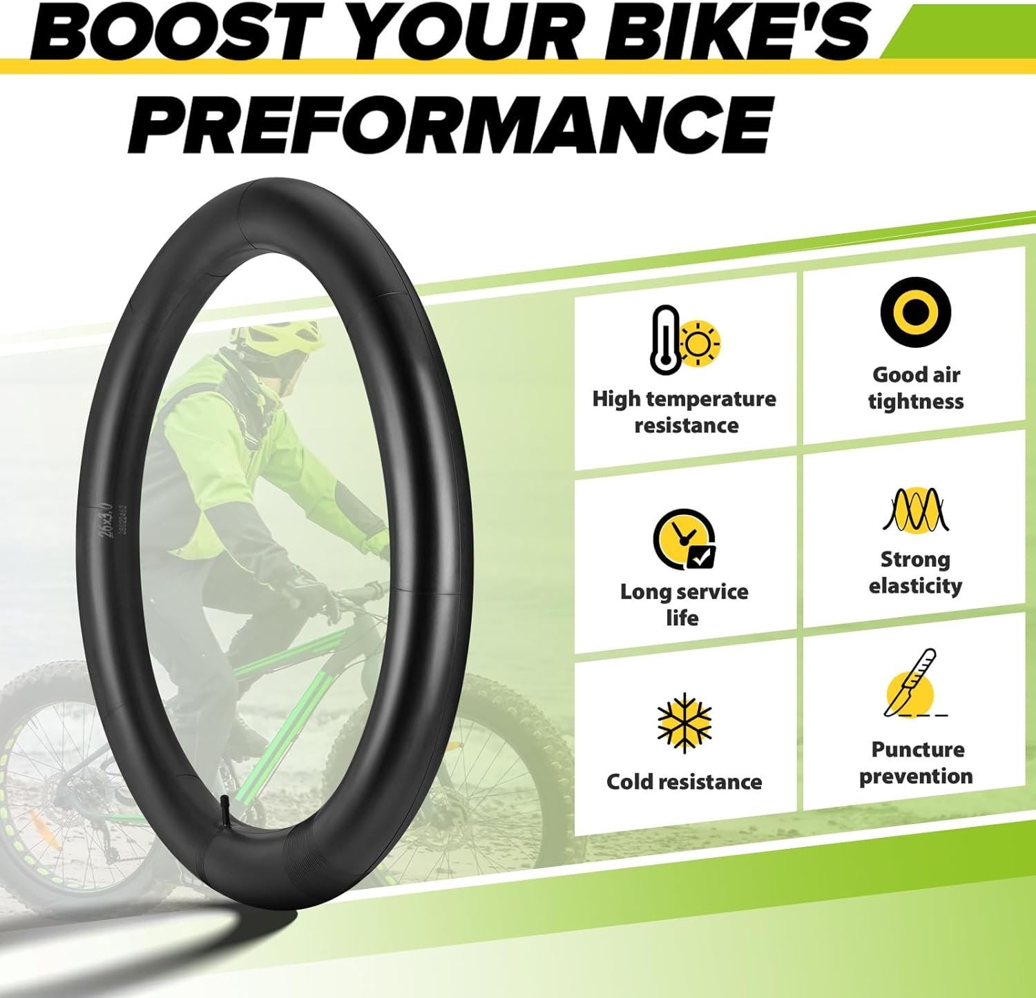 🚴♂【Quality Tested】Every tube passes a strict 100% quality control inspection. Strong wear resistance, not easy to break and deform during use. The inflation port has a protective cover, the gas in the 20×4 bike tube is not easy to leak. Thicker than others you have!