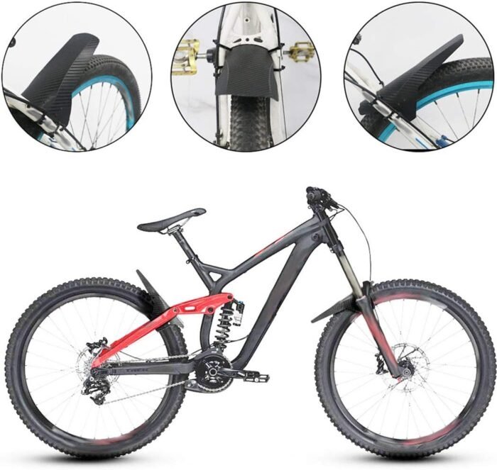 2Pcs mudguards,compatible with both front and rear fork.It protects your bicycle from dust,mud,debris and water spray during riding.