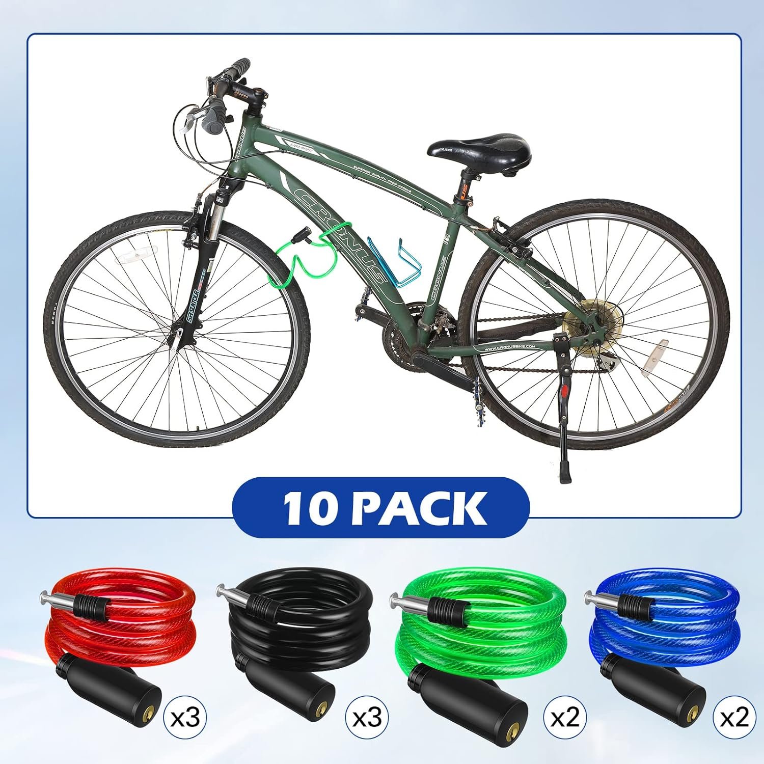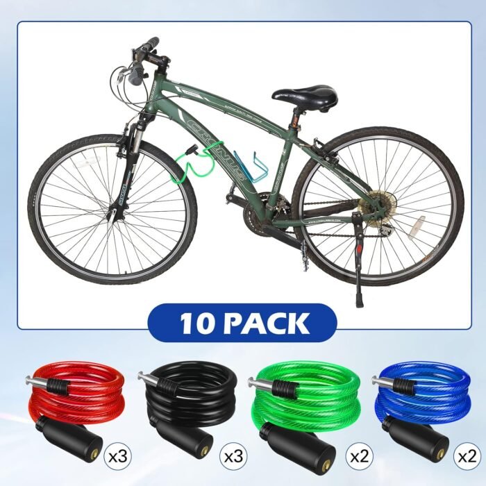 Color Cable for Easy Identify: the cable of the bike chain lock has 4 different colors, including black (3 pieces), red (3 pieces), green (2 pieces) and blue color (2 pieces), easy for you to identify your bike