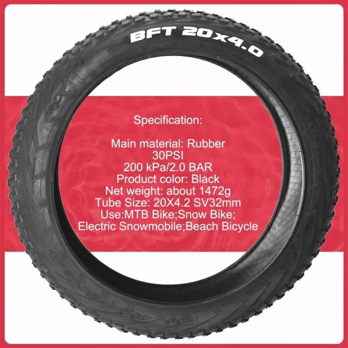 (100-406) 20×4.0 Bike Tire for electric bikes. Designed for off-road adventures, these tires offer exceptional stability, control, and traction on rough terrain, making them the perfect choice for adventurous riders.