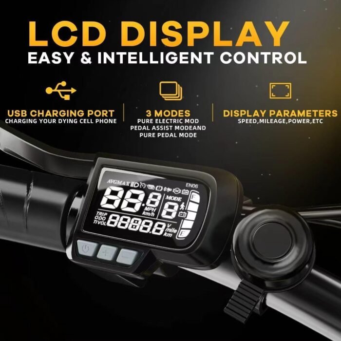 【Foldable Design & LCD Display】The foldable frame makes this e-bike ideal for commuters and those with limited storage space. It folds quickly for easy storage in a car trunk or for carrying on public transportation. Electric bicycle LCD display provides essential information such as speed, battery level, distance traveled, and pedal-assist mode