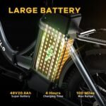 48V 20.8AH Large Capacity Removable Battery: The commuter electric mountain bike is equipped with 48V 20.8AH battery, which increases the mileage by 60%. When charging this e-bike, it can effortlessly provide 80 miles of range for your most adventurous riding excursions. Cybervelo E-bike, perfect for daily commuting, has a detachable design that enables the battery to be easily removed from the e-bike and charged indoors.