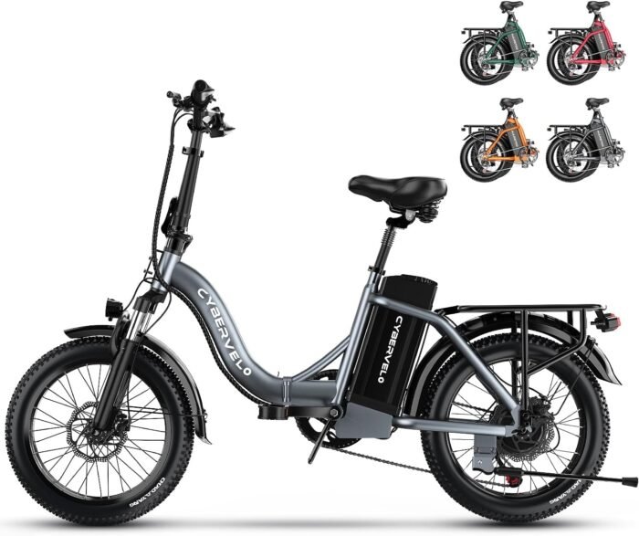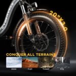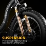 Braking & Shock Absorption: Make sure the safe and comfortable. The 20″ fat tires are anti-slip and puncture-proof, ensuring you can ride on roads, snow, beaches, and rugged mountain roads. Cybervelo electric bike adopts front and rear double disc brakes and EABS power-off brake for sensitive braking, which can make sure strong off-road performance, reliable braking force and high safety factor. The high-strength shock-absorbing front fork and seatpost absorb the bumps of long, rough roads.