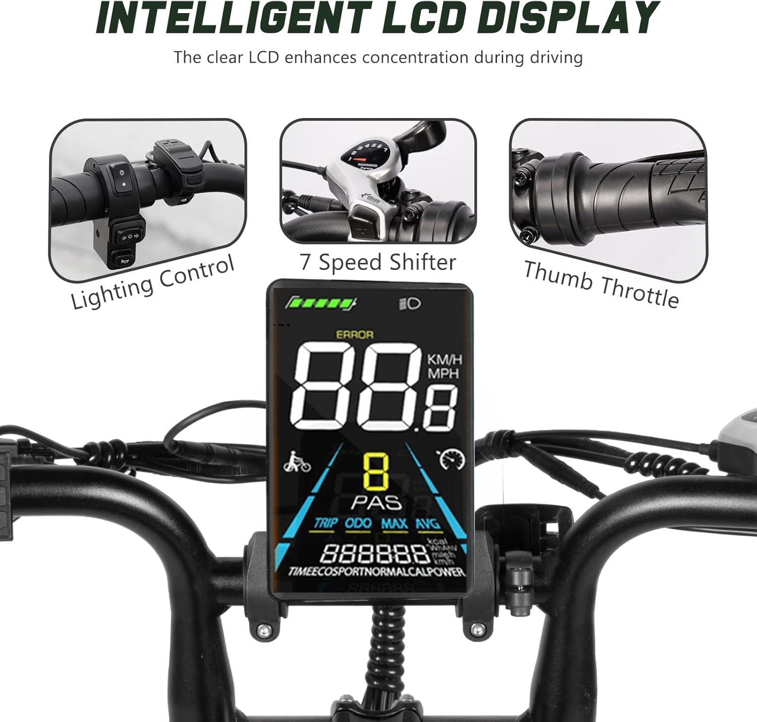 ✔️3 Riding MODES – switch between throttle and pedal assistance by display to match your diverse riding need. In throttle mode, the range can reach 30-35 miles, while in assisted mode, it extends to 35-50 miles. Moreover, in only pedal mode, it cleverly strengthens the muscles around the knees, ultimately contributing to maintaining your physical health.