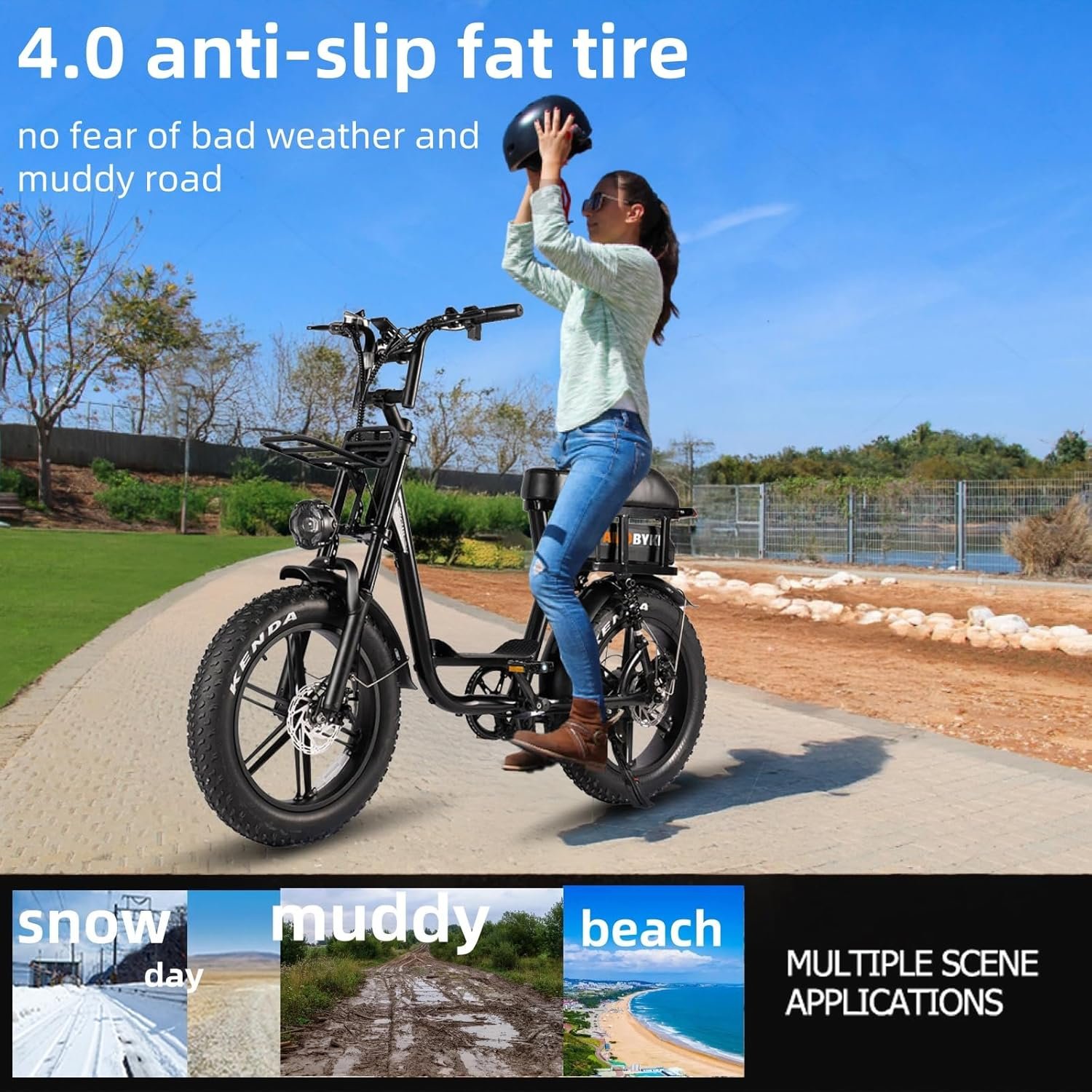 ✔️Practical Front Basket-The 60 lbs load capacity adds more flexibility and convenience to your riding life, allowing you to carry items effortlessly and roam freely.