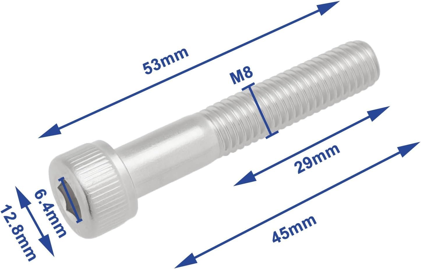 Size: With an M8 (8mm diameter) and a 45mm shaft length (excluding the head), these hexagonal socket head bolts are specifically designed for easy installation and removal using a 6mm Allen key (NOT include). The precise sizing ensures a snug fit and secure connection, making them ideal for bicycle seat post applications.