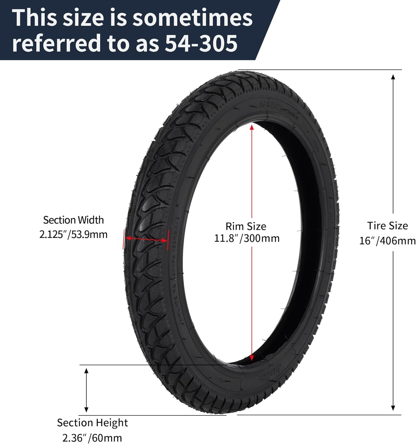 Wide Compatibility – This 16 x 2.125 bicycle tire fit for most kids bikes like RoyalBaby, Joystar, Dynacraf, also fit for motorcycle, electric bike, EW36 electric scooter. The diameter of this tire is 16″ and the width is 2.125″. Please check your original dimensions before purchasing