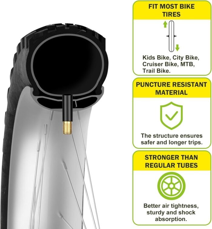 🚴‍♂【Comfort riding】Butyl rubber, bike inner tube 26 x 2.125 has better air tightness, sturdy, and shock absorption. Very durable, with a thick and sturdy construction that can withstand rough terrain and regular use. You must get this inner tube as a spare or to fix it flat!