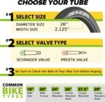 🚴‍♂【26″x2.125-2.4】Bike inner tube 26 x 2.125 fits most tire bikes with 26” tires between 2.125” to 2.4” wide(26×2.125 26×2.20 26×2.25 26×2.3 26×2.35 26×2.4). For 35mm Schrader Valve. Ride Safe, Ride Strong, Ride Happy!!