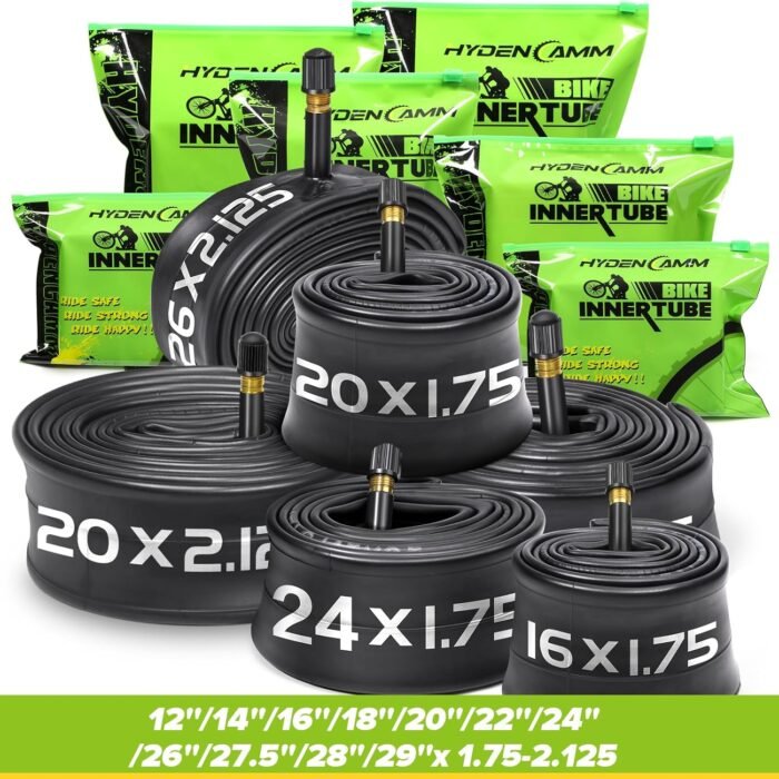 2 Pack 12″/16″/ 18″/20″/ 24″/ 26″/27.5″ x1.75/1.95/2.10/2.125 Bicycle Tube with 2 Tire Levers, Bicycle Tube with 32mm AV Valve, Butyl Rubber Inner Tube for Road/MTB Bike by Hydencamm (2 of One Size)
