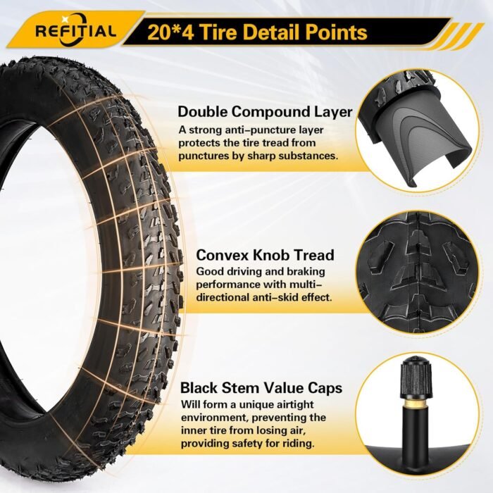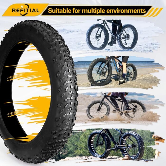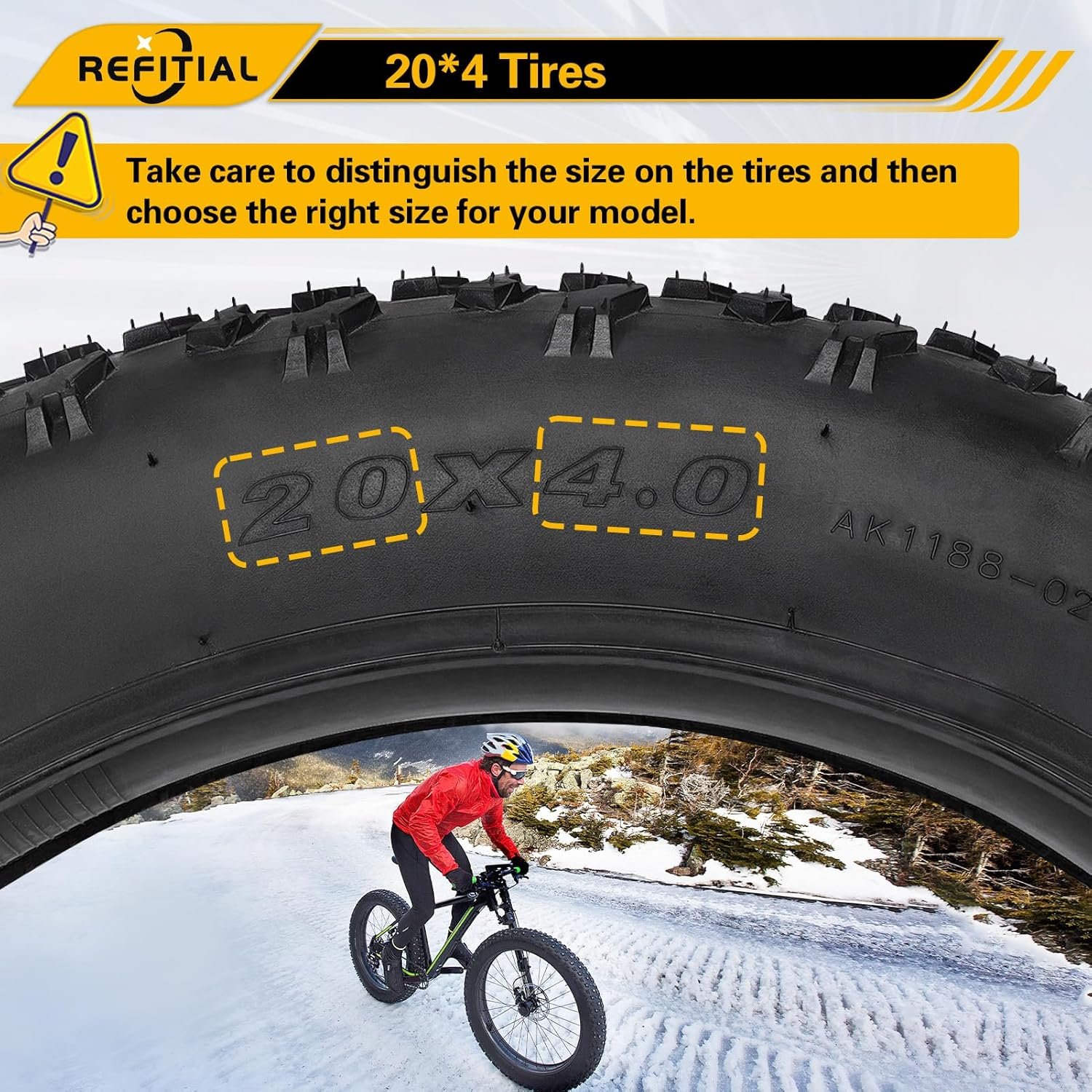 【Wide Compatibility】:The fat tire are suitable for 20×3.5/4.0 e-bikes, snow bikes, mountain bikes, and thick-tread models. Ensures safe riding on snow, beaches, rough terrain, and urban roads for both professionals and casual riders