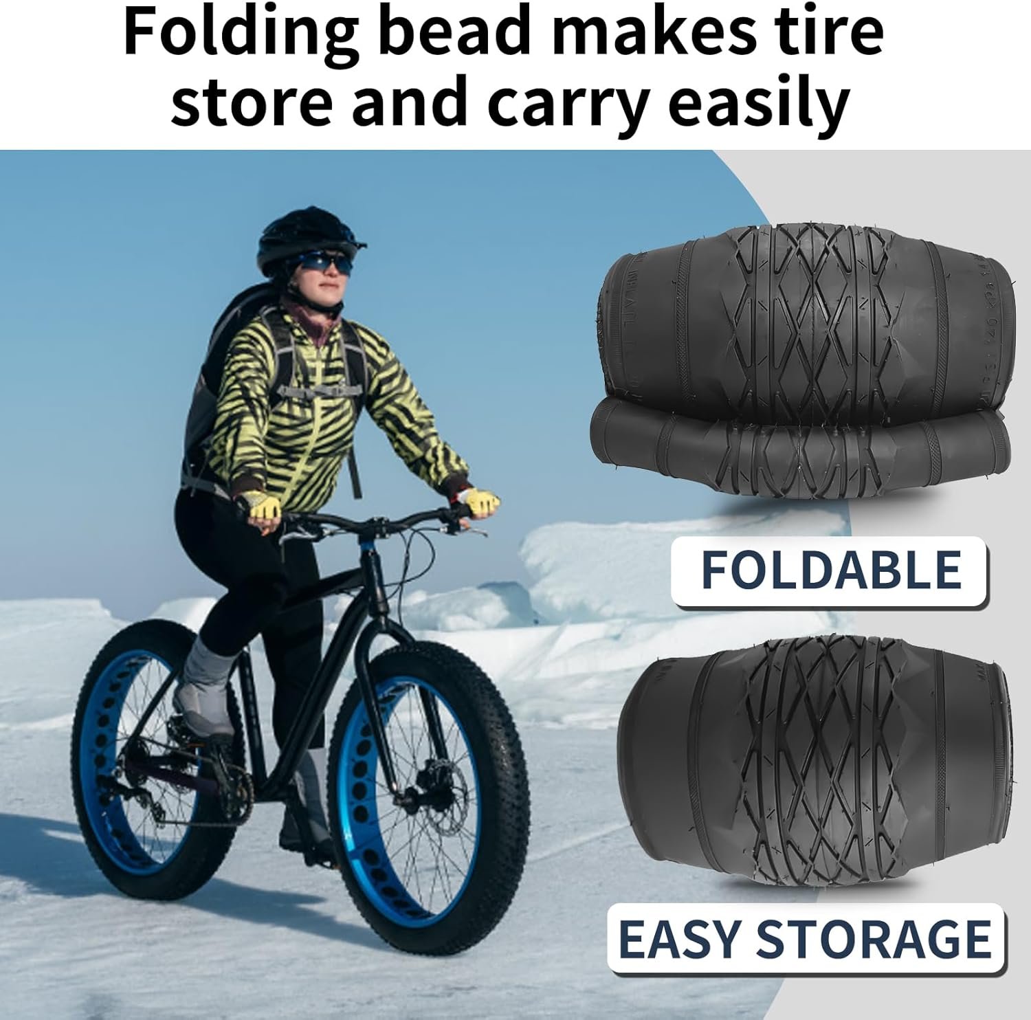 E-BIKE Fat Tire: It is a perfect choice for all electric bikes ; Designed with high quality rubber and nylon makes sure it lasts longer and is more wear-resistant than ordinary tires; This 26X4.0 fat bike tire provides exceptional durability and performance for a smooth and comfortable ride