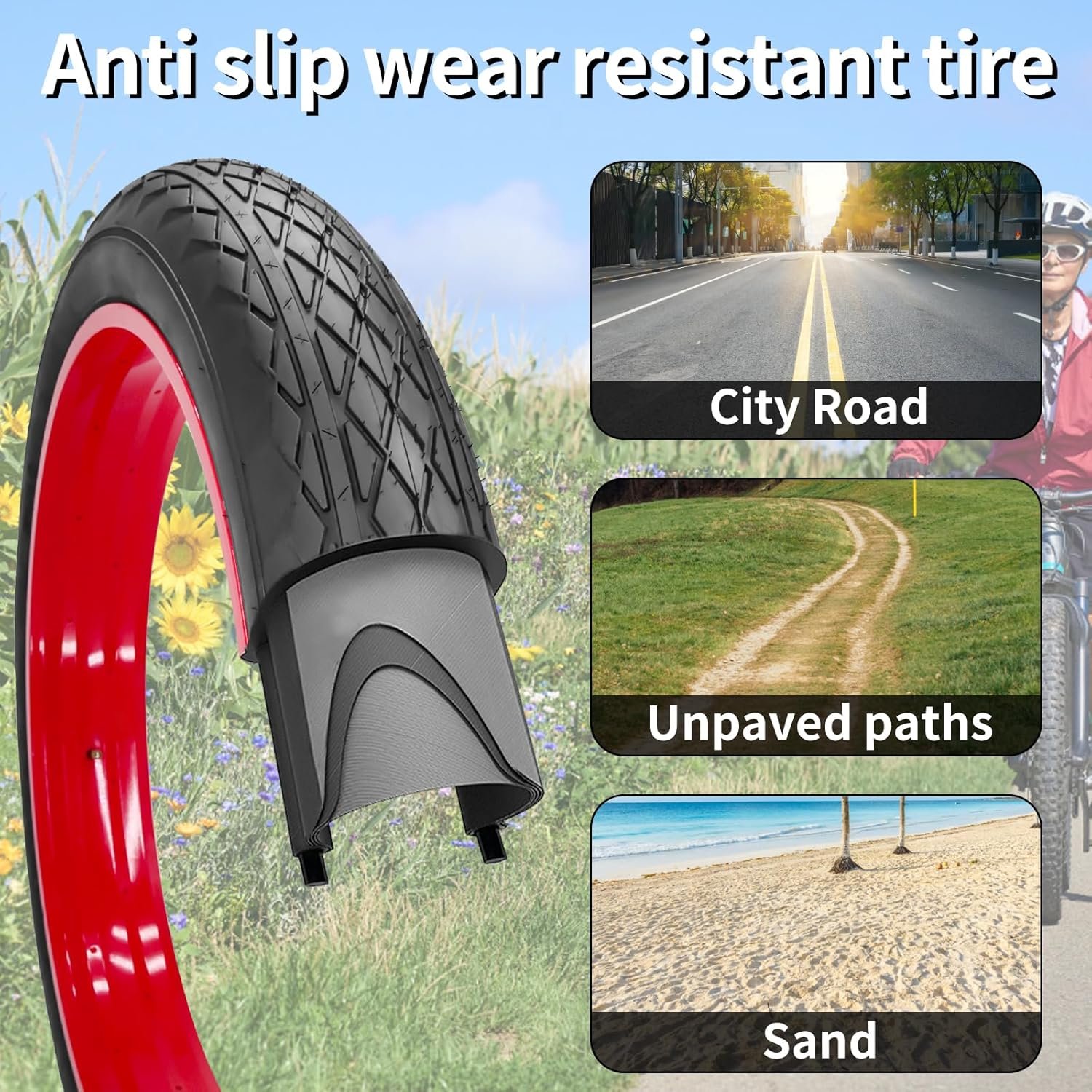 All Terrain: Whether you’re exploring the city streets or hitting the trails, the E-BIKE tires provide a reliable grip and traction, allowing you to confidently navigate any terrain