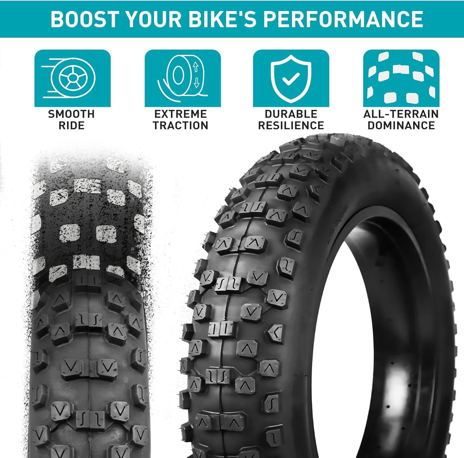 EXTREME DURABILITY:This 20 x 4 fat tire is designed for rolling speed and minimal drag on hard-pack or paved terrain.Navigate every riding surface with ease and confidence, ensuring a robust and reliable ride across all terrains.