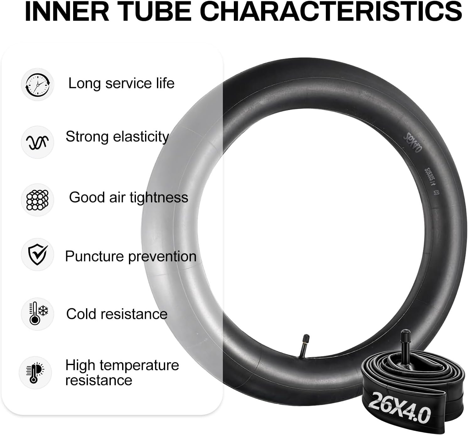 Comfortable Riding Experience: Our 26in x 4.0 inner tube is designed to improve overall ride quality by providing better shock absorption and tire stability, ensuring a smoother and more enjoyable journey on your bike.