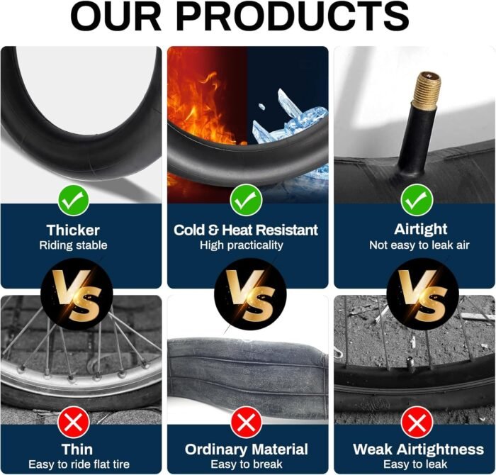 Easy To Install: Installation is quick and easy. Please follow inflation guide when airing a new tube. Hassle free to replace your old tire tubes within minutes which is time saving and efficient.