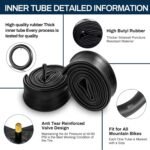 High Quality: The bike tube is made from premium butyl rubber. It has the advantages of excellent puncture resistance, good sealing performance, ozone resistance, aging resistance, shock absorption, and electrical insulation.