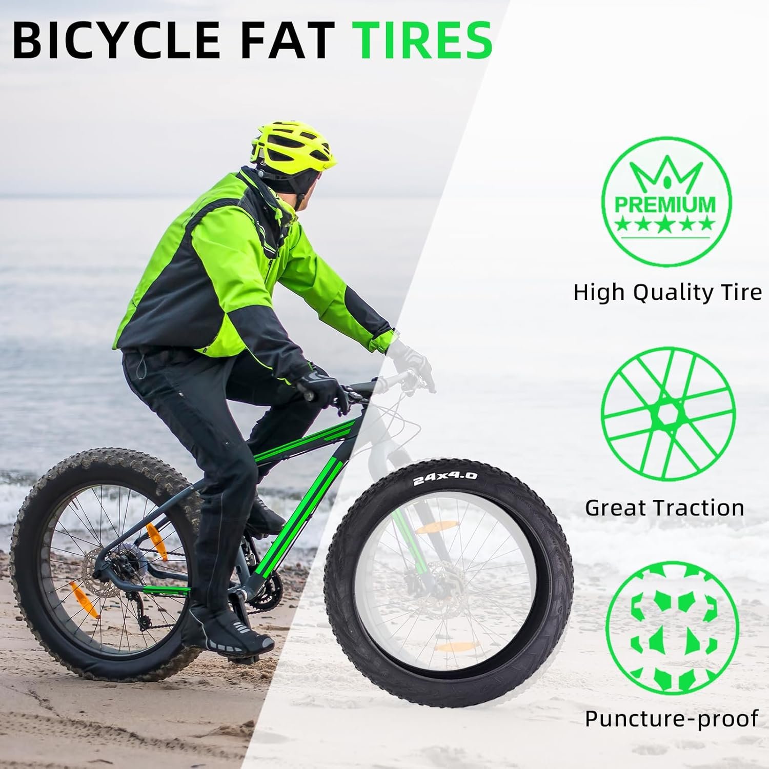 Size: You will receive 2 pcs 24*4.0 tires and 2 pcs inner tubes suitable for 24*4.0, both front and rear wheels can be used. The quality and thickness of the product is better than ordinary tires, avoiding the trouble of frequent replacement
