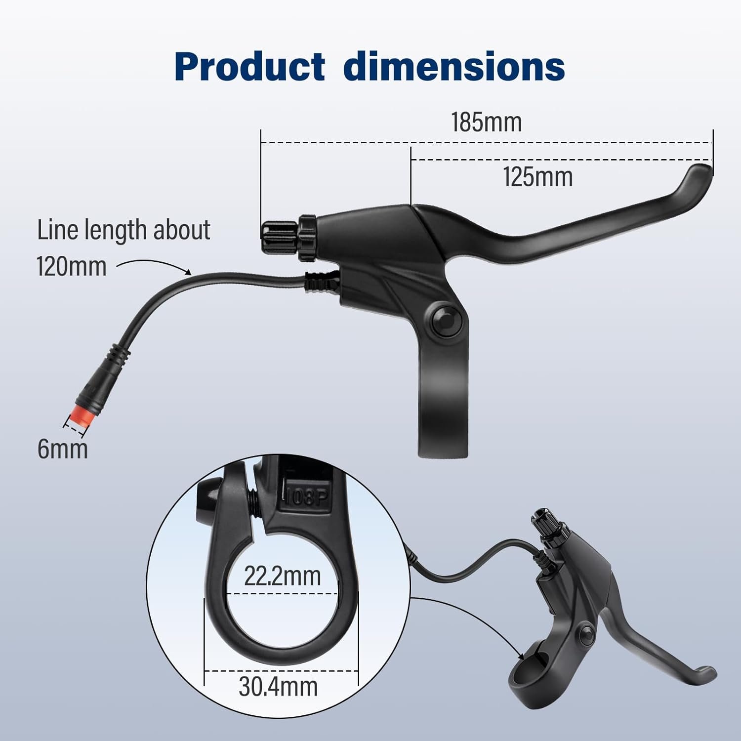 Our e-bike brake levers feature a 2-pin male waterproof connector, 12cm cable length, and fit 22.2mm handlebars.