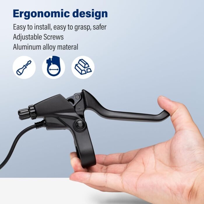 Purpose & Installation: The electric handlebar brake lever can cut off the sensor and cut off the power supply of the motor when the brake device is pressed. It ensures safety during your ride.The installation simply requires two cables to be connected and the handle to be fixed.