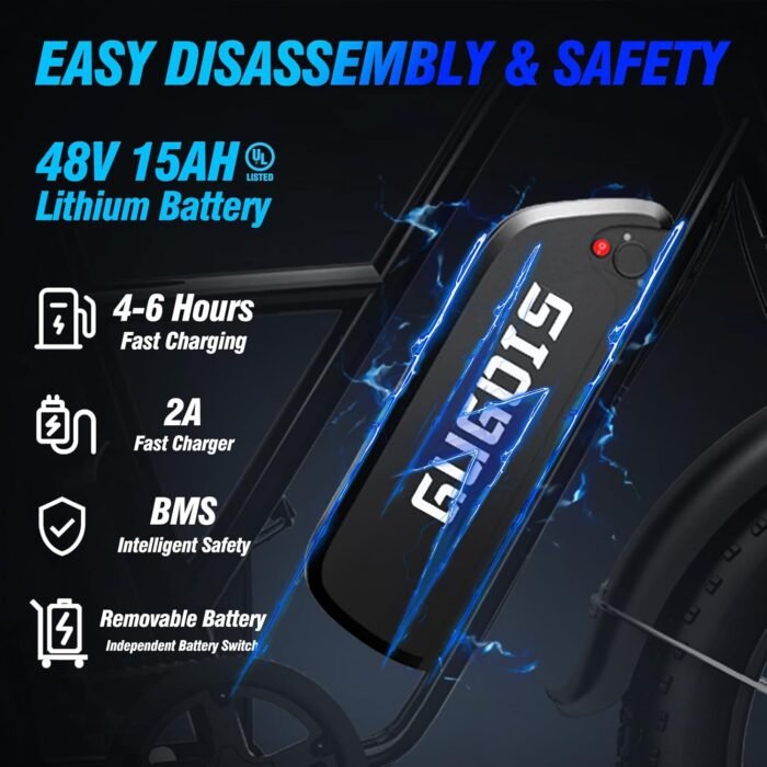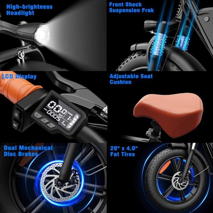 UL CERTIFIED HIGH CAPACITY BATTERY: 20″ x 4.0 fat tire ebike are equipped with UL2849 certified 48V 15AH high-capacity removable batteries with a maximum range of 30-60 KM. You can enjoy your ride without worrying about running out of power, so say goodbye to cars with high fuel consumption