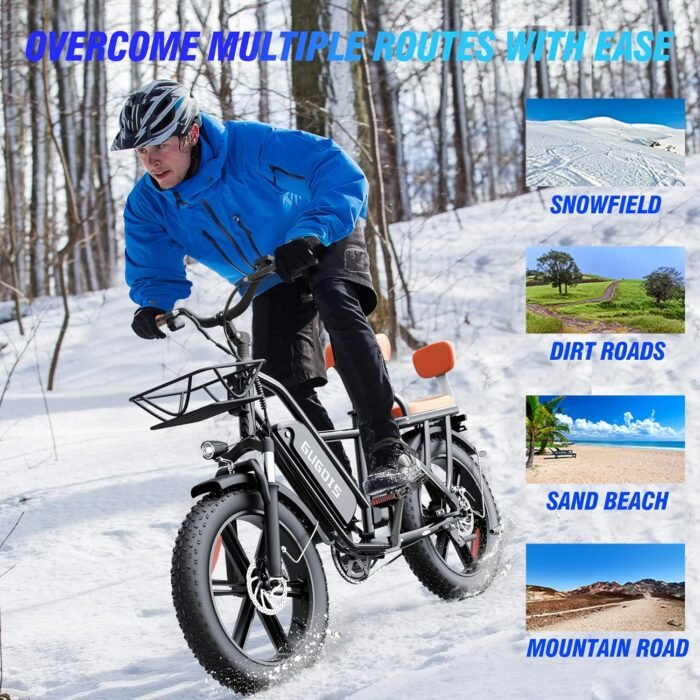 1000W POWERFUL HUB MOTOR: bicicleta eléctrica para adultos reaches an impressive speed of 30 mph and a maximum range of 60 KM! It’s not just for excursions, commuting, shopping, picking up kids and other daily activities. It’s also great for adventurous rides in the mountains, snow and on the beach