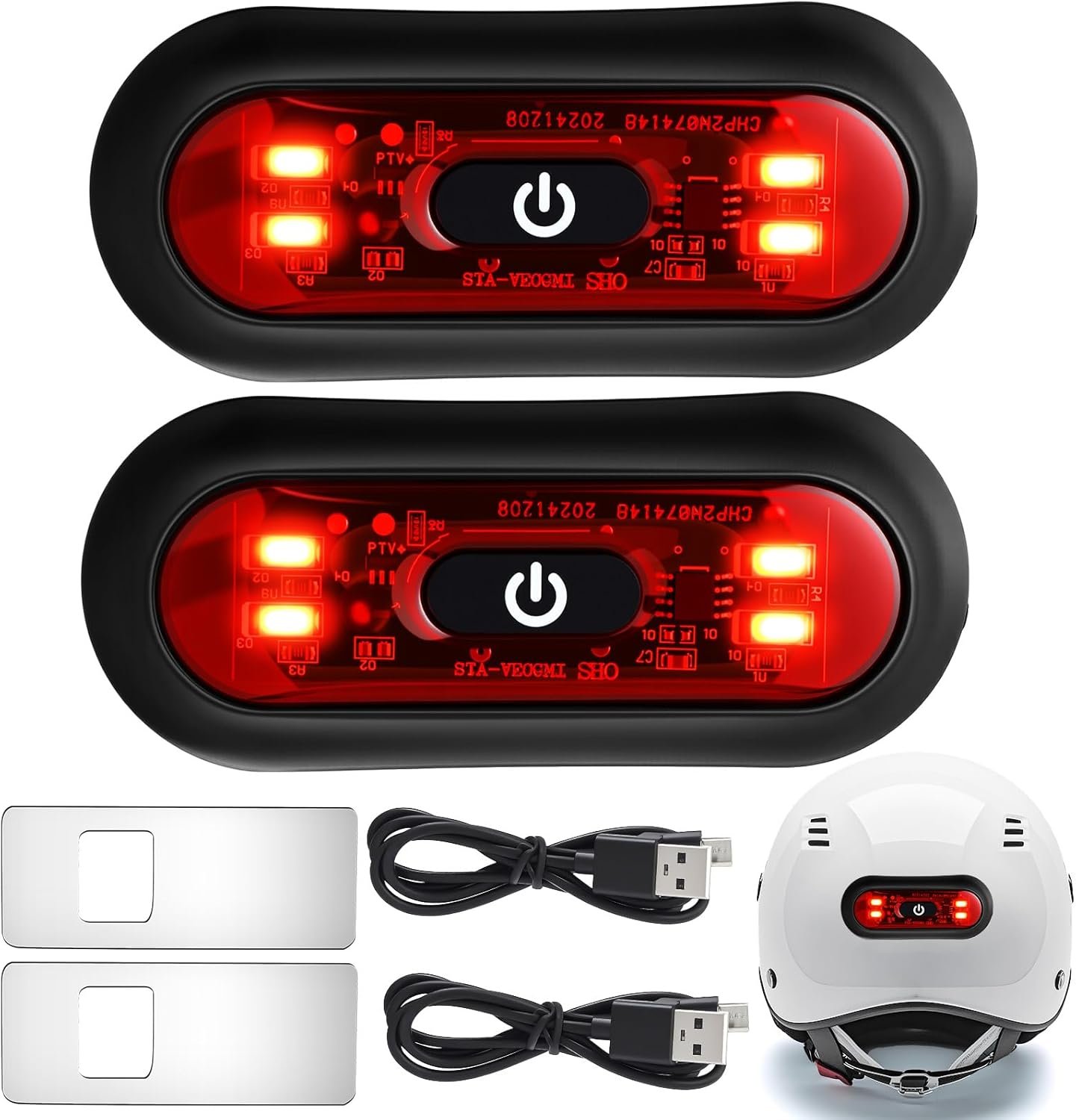 2 x Helmet warning rear lights with USB cables and adhesive tapes