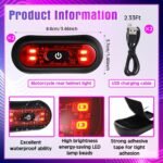 USB Rechargeable Battery: the motorcycle tail light is equipped with a USB rechargeable battery, which only takes 2 hours to charge and can be applied continuously for 8-10 hours after being fully charged, meeting the needs of long-term riding or outdoor activities; The warning tail light eliminates the need for frequent battery replacements, providing you with long-lasting lighting support