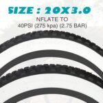 EXTREME DURABILITY:The 20×3.0 electric bike tire are Designed for rolling speed and minimal drag on hard-pack or paved terrain.Navigate every riding surface with ease and confidence, ensuring a robust and reliable ride across all terrains.