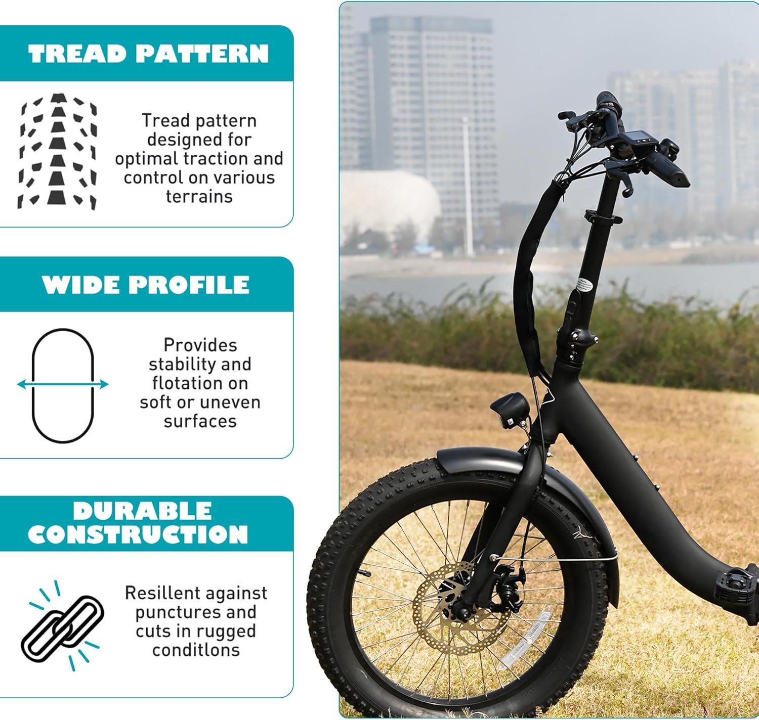 PEERLESS ADAPTABILITY: The ebike tires 20 x 3 is versatility not only for mountain bikes but also electric bicycles, snowmobiles, and various other bike types.