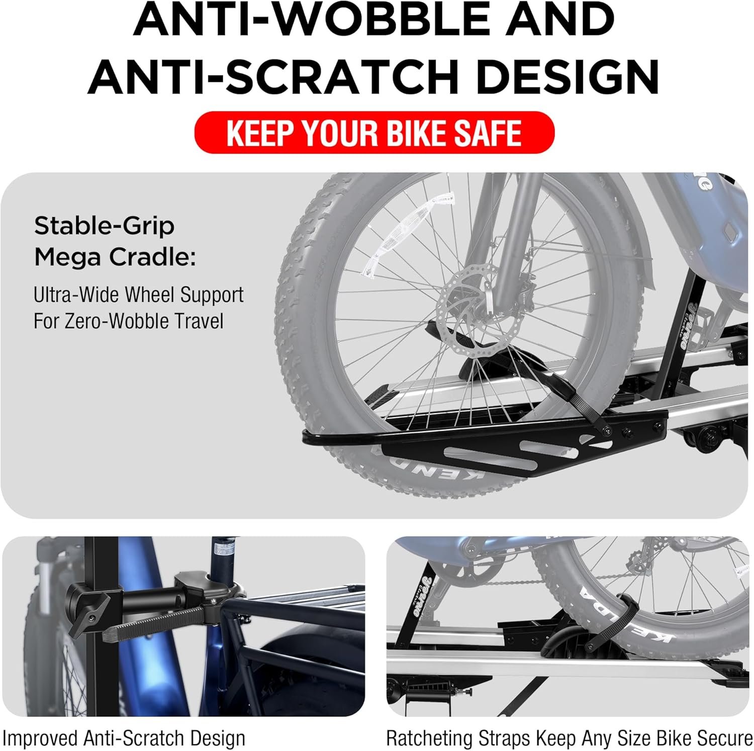 DURABLE and SAFE: Young Electric bike rack is constructed with reinforced steel and aluminum which makes it durable and powerful enough to carry 2 bikes weighing 100 lbs each. Comes with 2-arm fix, patent secure wheel cradles and anti-wobble structure, that secure your E-bikes in place without swaying and knocking against vehicle.