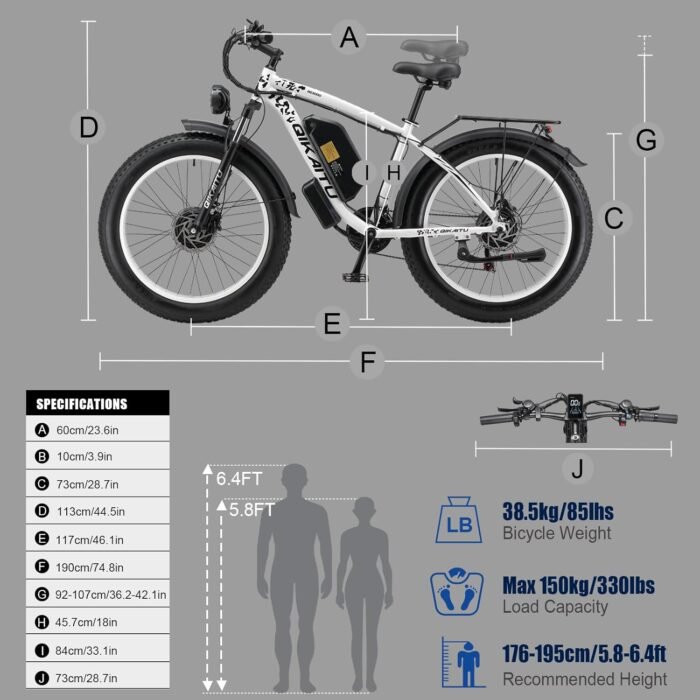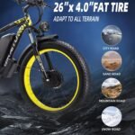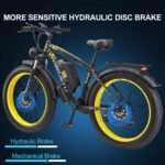 Anti-skid and durable tires: 26″ x 4″ puncture-proof tires not only can prevent being punctured by sharp objects, but also have very good grip to prevent slipping. With the front and rear hydraulic disc brakes, it can brake more effectively and safely in short distances, helping you to ride out of bad roads quickly and safely.