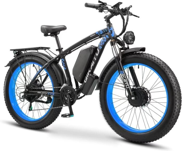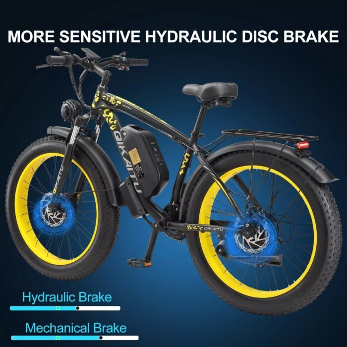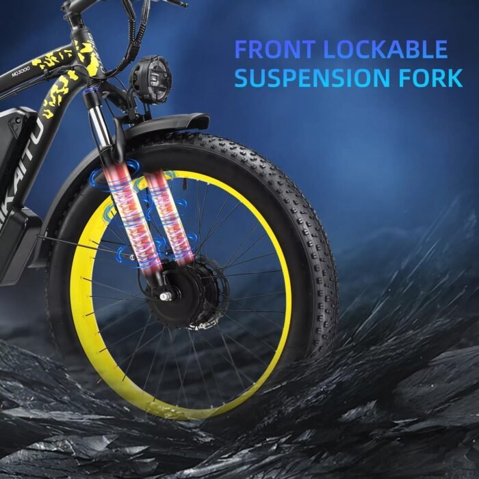 2000W peak motor: MQ3000 electric bicycle is equipped with a 2 x 1000W high -speed brushless wheel hub motor, which can provide a speed of up to 30MPH (according to weight and road conditions), up to 85Nm torque, which can cope with various steep terrain and rugged mountain roads. And you can easily ride a 40 -degree steep slope, allowing you to ride comfortably on the mountain roads, beaches, snow, and urban roads, and enjoy the fresh air around.