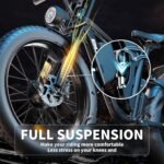 Dual Suspension & Hydraulic Disc Brakes: This adult electric bike features an advanced front and rear dual suspension system, absorbing impacts from rough roads and uneven trails while reducing joint stress for a smooth, comfortable ride. The hydraulic disc brakes provide powerful, precise stopping power with minimal effort, ensuring reliable control on any terrain for a worry-free experience.