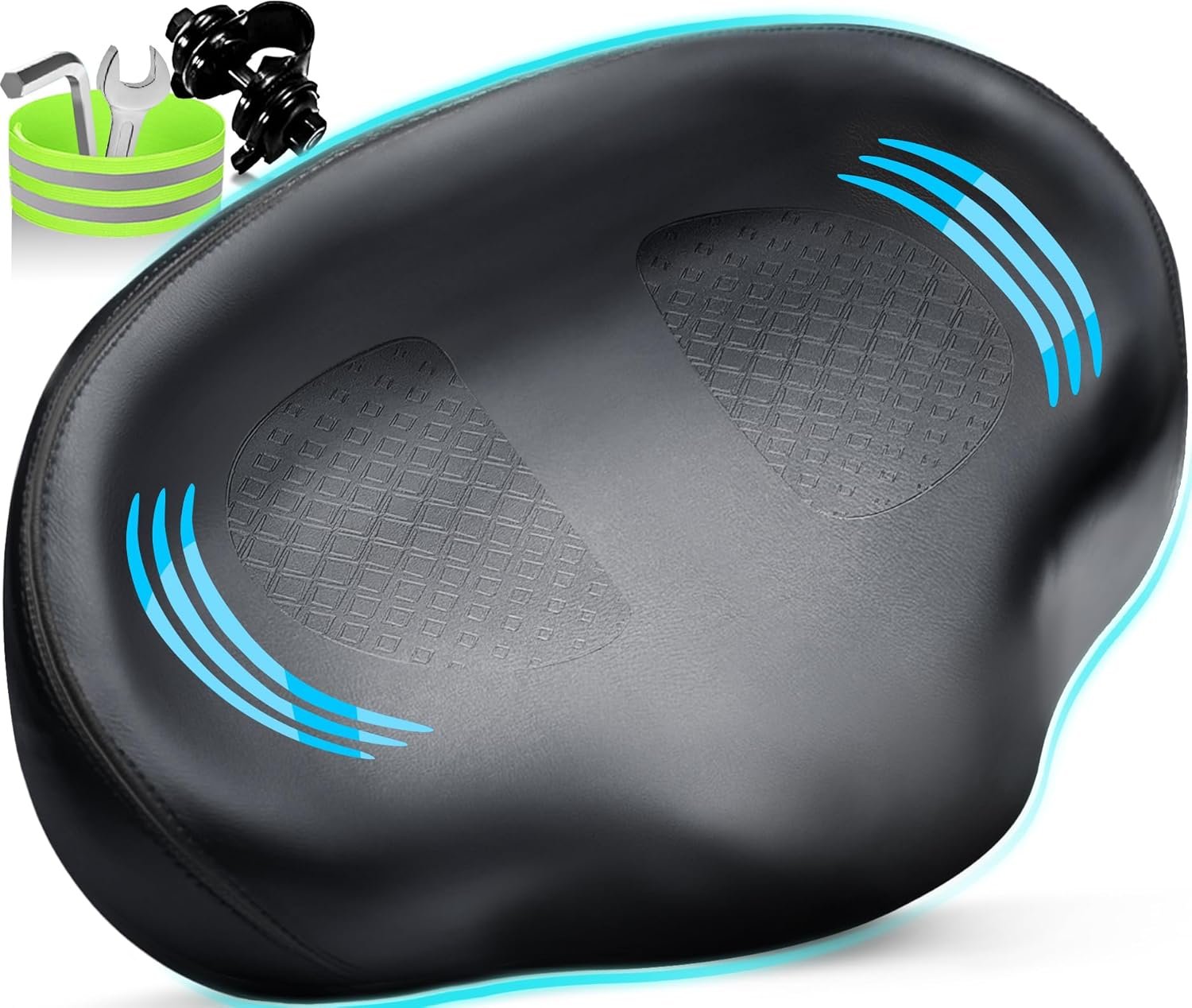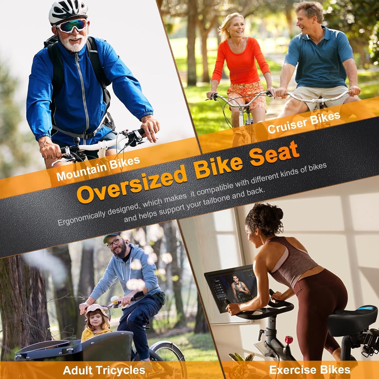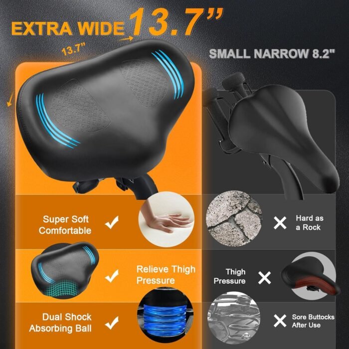 2025 Noseless New Generation – Upgraded-design bike cushion without the “nose”, 4.8” thick and 13” extra wide bike seat, providing more area for thighs moving, just pedal as fast as you want.