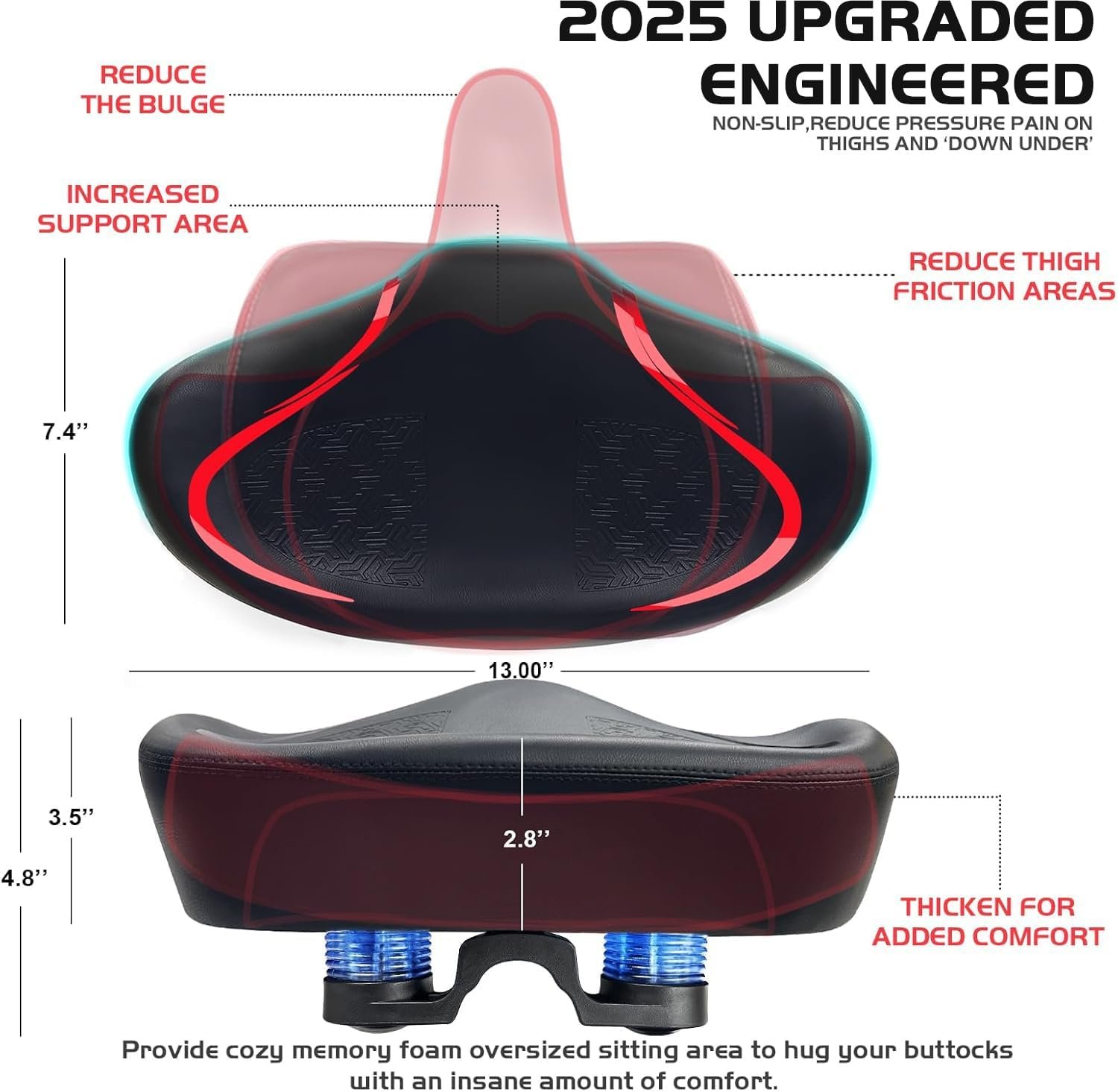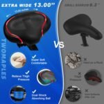 Extra Wide Bike Seat – 2025 NEW Twomaples oversized Noseless bike seats specially designed for people with big buttocks. Super Comfort bicycle accessories for peloton bikes, electric bikes, mountain bikes, spinning bikes, exercise bikes, cruiser bikes, ebikes, stationary bikes, workout bikes, folding bikes and adult tricycles, etc