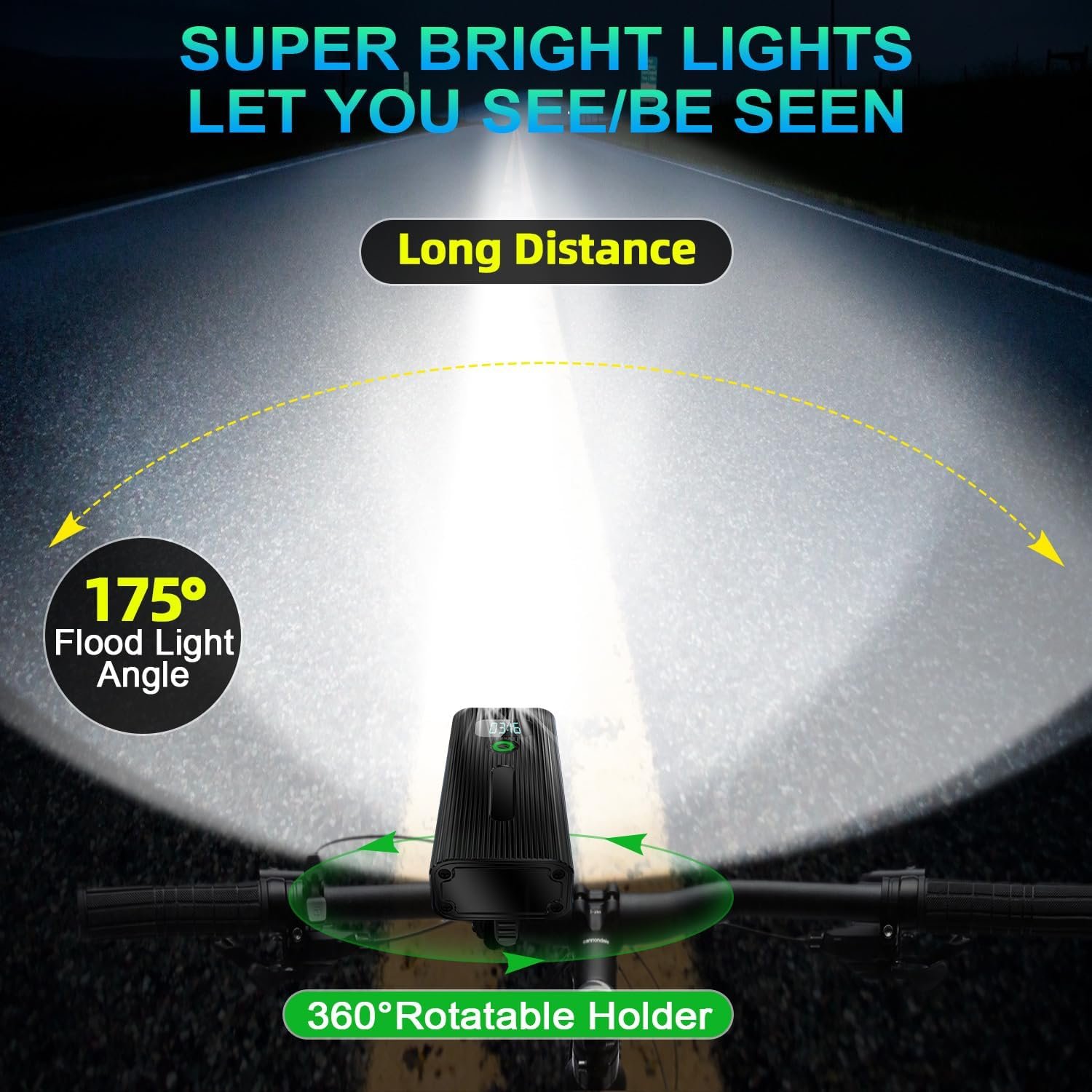 CYCLING SAFER at NIGHT:ultra bright Bike light,the visible distance up to 1000ft range, 180 °Wide Angle, allowing you to ride at night to see wider and further areas, Use it during cycling, running, hiking, camping, dog walking, night activities, power outages, etc