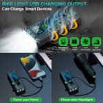with 5200 mAh RECHARGEABLE :bike lights front and Back can be charged with any device, charge one time can runtime up to 36+hours.and it can also charge your phone and other device , no longer have to worry about your phone running out