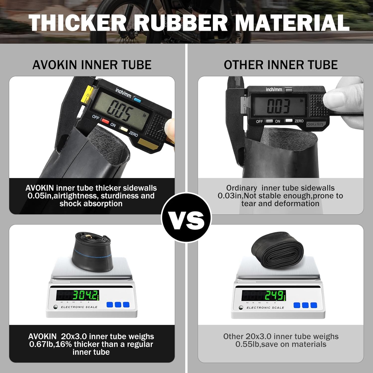Riding comfort and safety: 20 x 3.0 premium quality butyl rubber inner tube can provide better shock absorption and impact resistance to improve the overall riding quality, enjoy a smooth and reliable riding experience in all kinds of terrain
