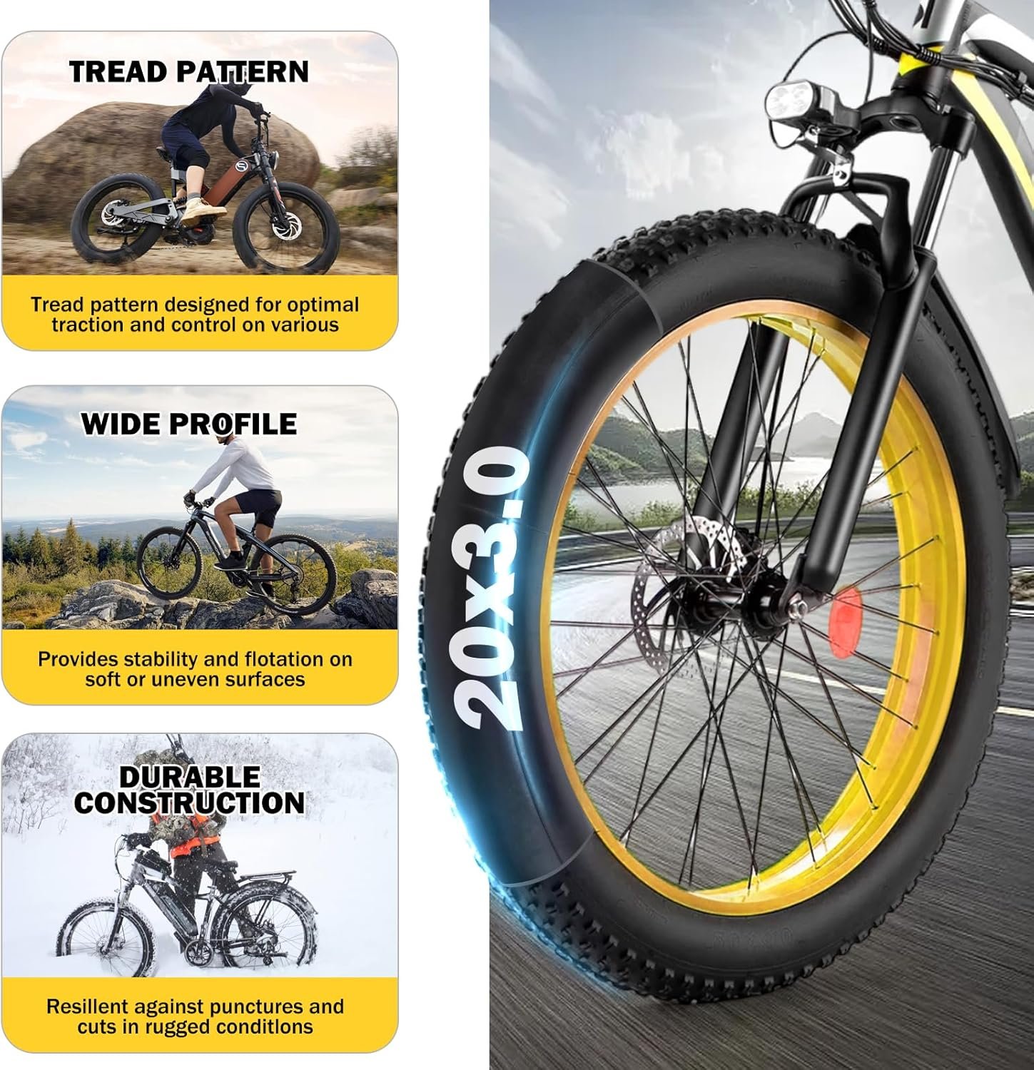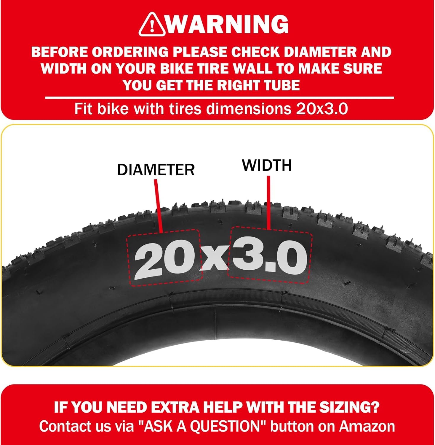 Size compatibility: Suitable for 20×3.0 fat tire tube, 32 mm Schrader valve with cover. Compatible with most bikes, including electric bikes, mountain bikes, folding bikes, BMX bikes and hybrid bikes