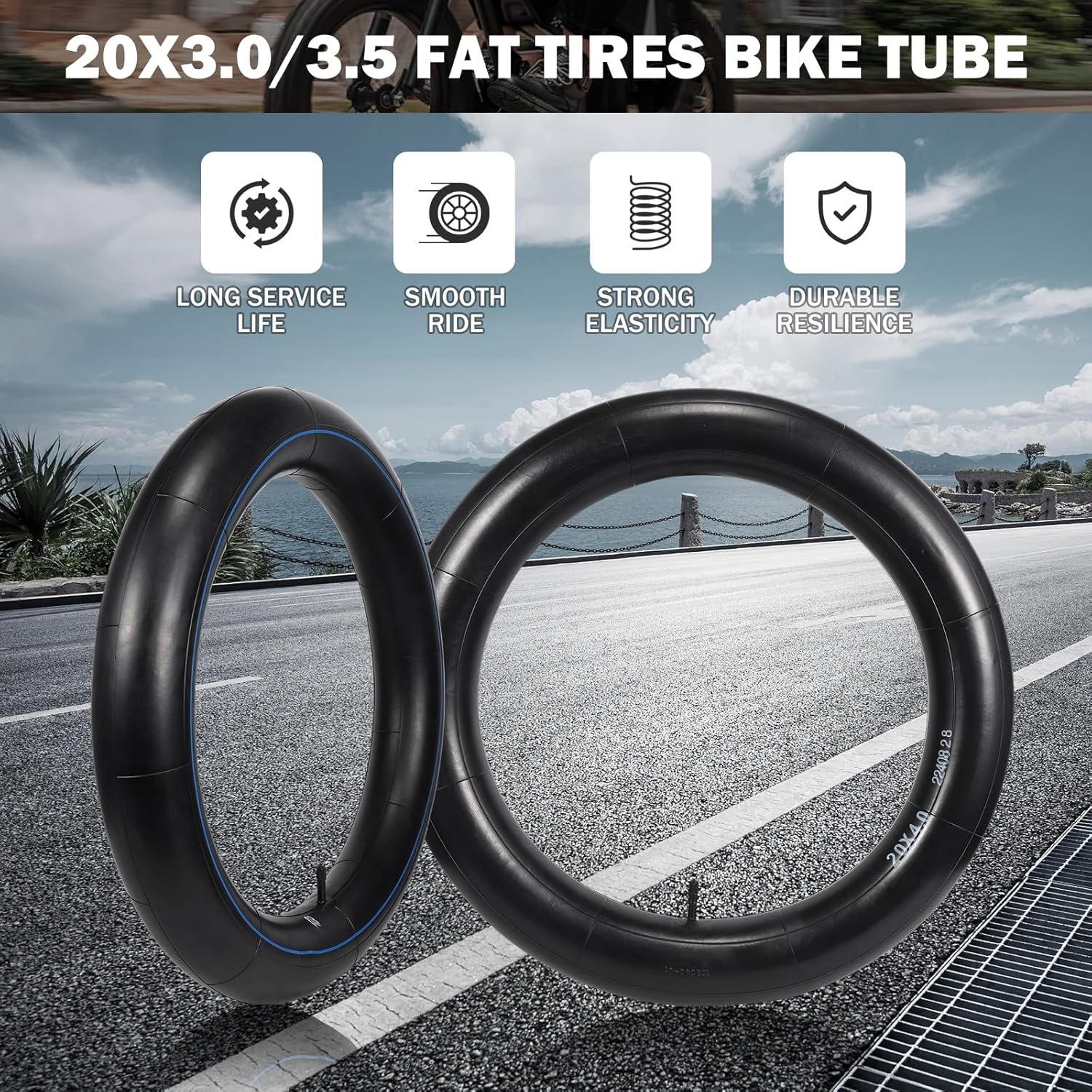 2 Pack 20×3 Fat Tire Bike Inner Tubes, 20 x 3.0 Premium Quality Butyl Rubber Inner Tube with Schrader Valve for 20 inch Electric Bicycle