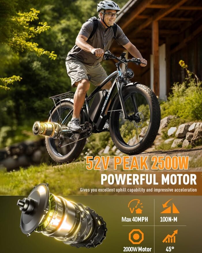 GAMVIRE 24″/26″ Ebike for Adults Electric, Peak 2500W E-Bike, 52V 19.2Ah, Max 40MPH&70Miles, Hydraulic Disc Brake, Off Road Snow Mountain Pedal Assist E-bikes, Fat Tire Fast E-Bicycle, UL Certified