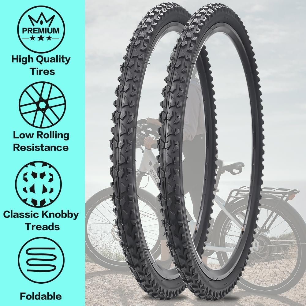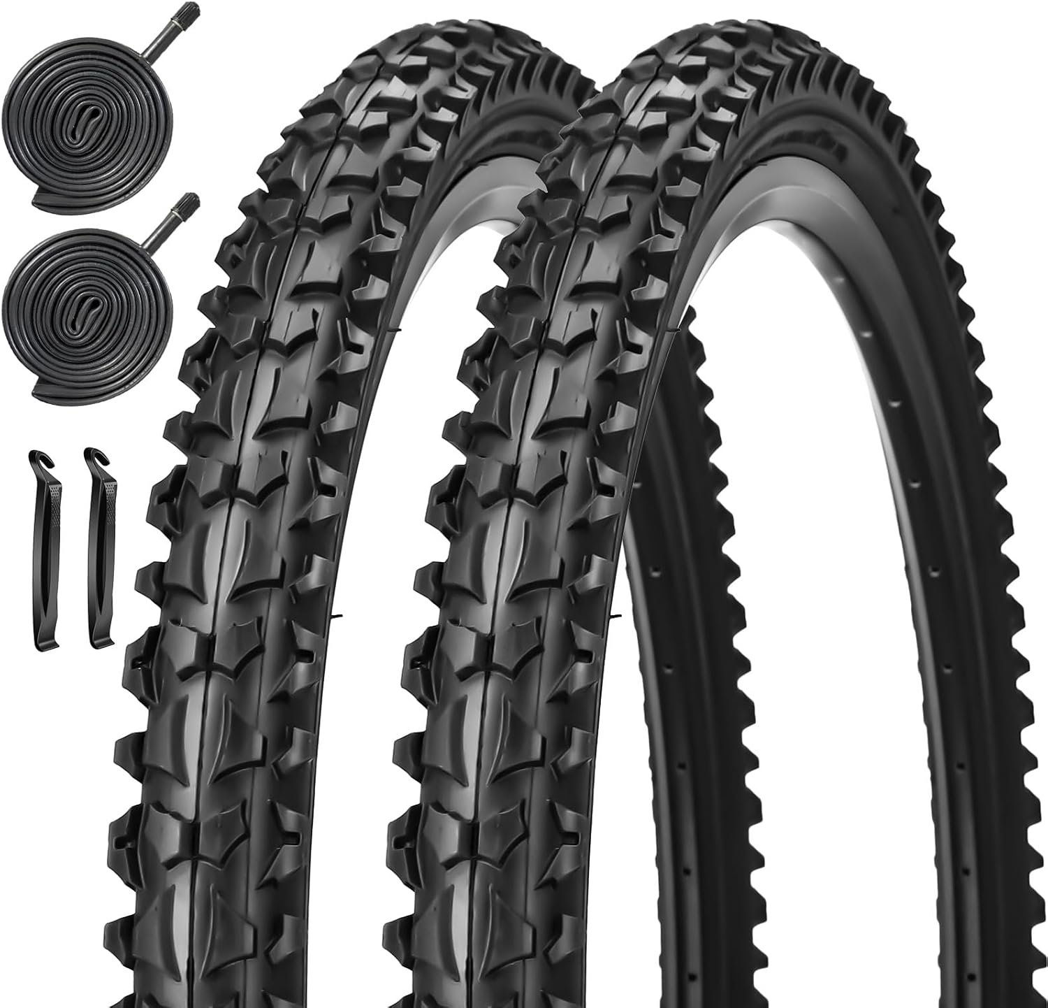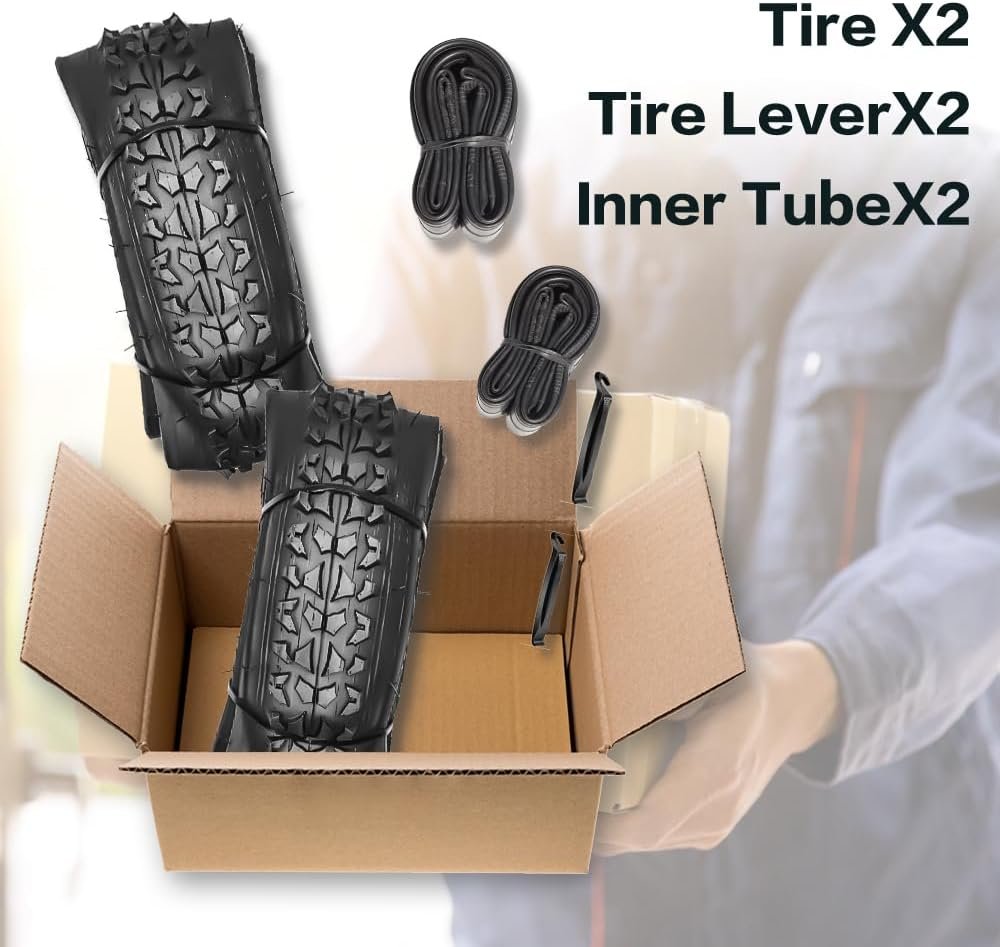 You will receive 2 pack of 26X1.95 foldable bike tires inner tubes and tire levers.