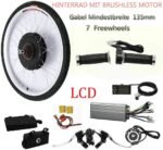 48V 1000W MotorWheelSpokes and Aluminum Circle48V 1000W ControllerController BagPAS (Pedal Assistance System)Twist Throttle with 5 StarBrake HandleConnectors and FuseLCD (about Speed and Power)Harness Wires