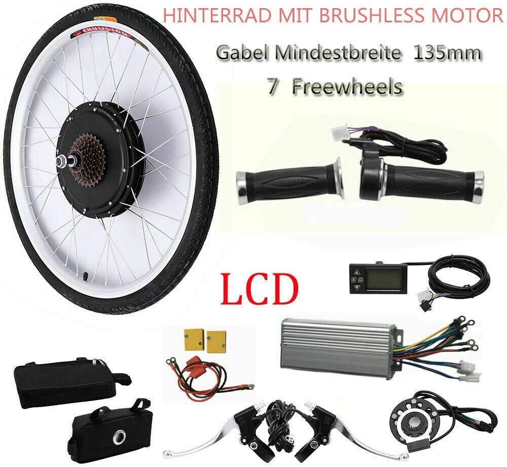 26″ 48V 1000W Electric LCD Bicycle E-bike Conversion Kit for Rear Wheel