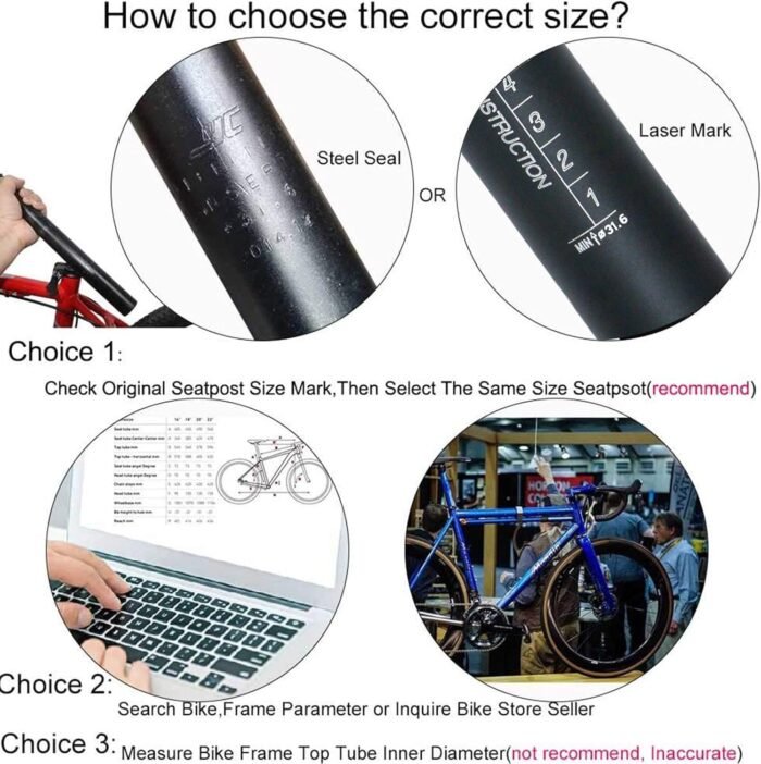 How to Choose the Size:1.Check the diameter of the original seatpost,choose the same size as the original diameter.2.Measure the inside diameter of the frame tube